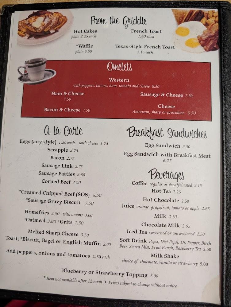 The menu at Exmore Diner reflects traditional American comfort food with a Southern twist. Breakfast options are extensive, featuring pancakes, omelets, and breakfast sandwiches. Diners particularly enjoy the homestyle vibe, with favorites such as the country fried steak and scrapple taking center stage.
